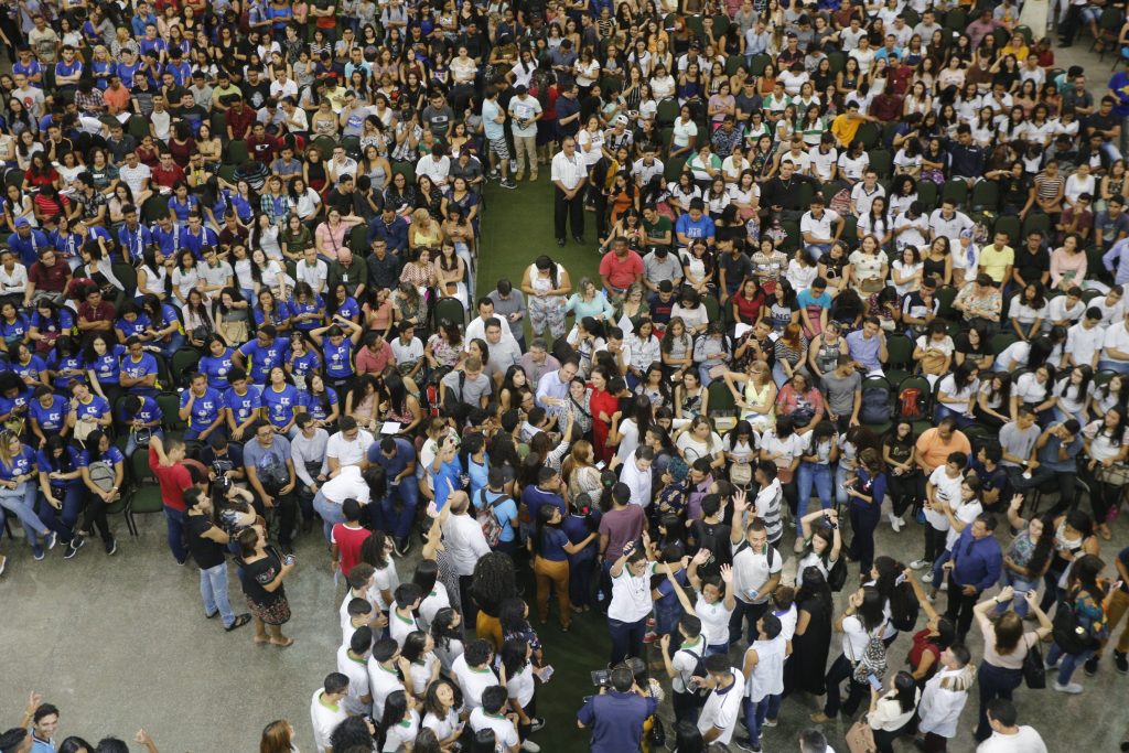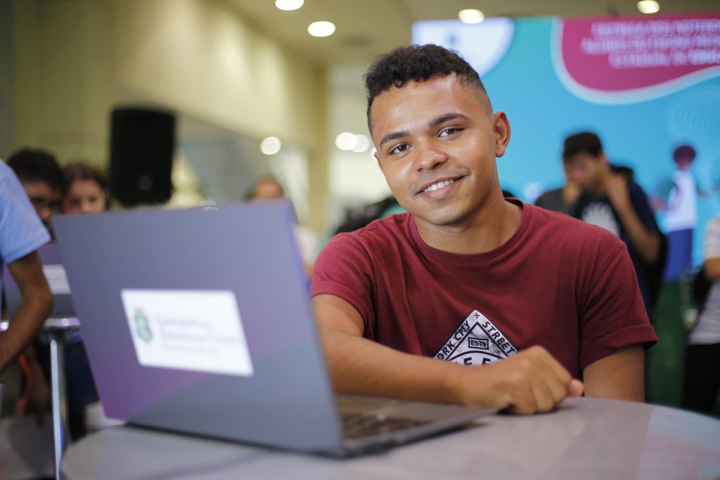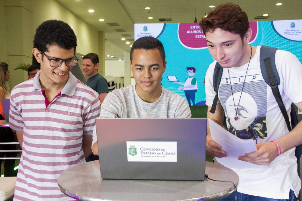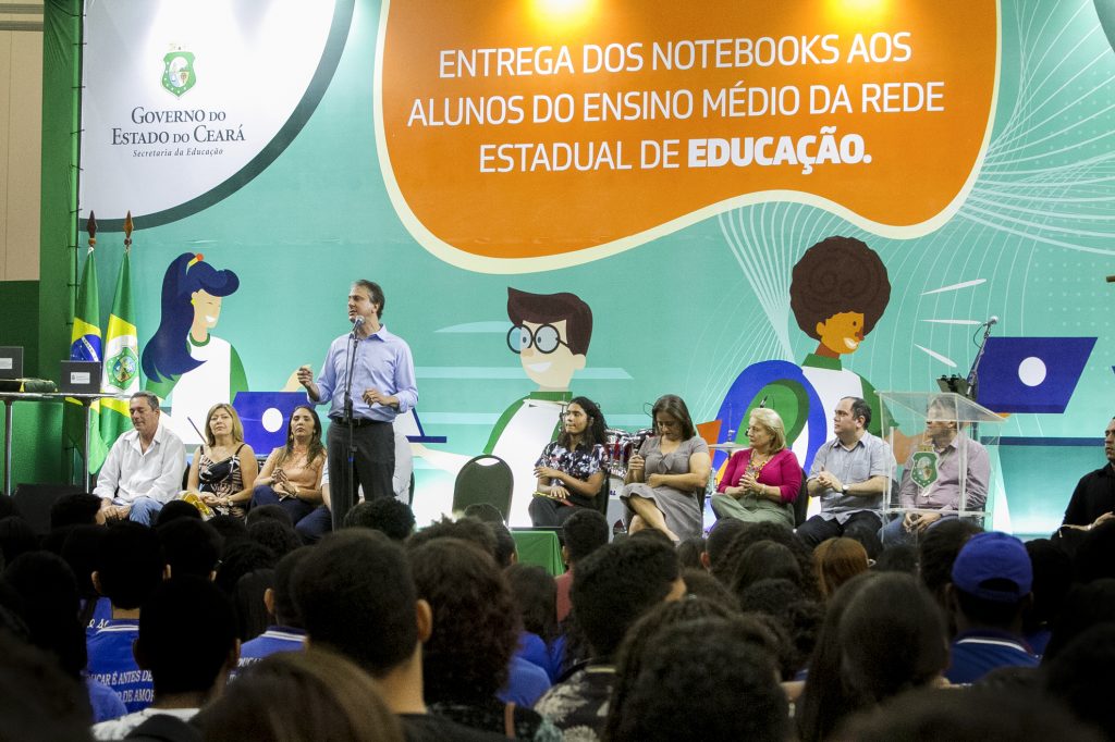 O Governo do Ceará reconhece o empenho dos estudantes da rede pública estadual de ensino e, como forma de incentivo, premiou com um notebook cada um dos 12 mil alunos que se destacaram pelos bons resultados acadêmicos. A solenidade de entrega dos equipamentos foi feita, nesta quinta-feira (10), pelo governador Camilo Santana, no Centro de Eventos do Ceará. A cerimônia contou, ainda, com a presença do secretário executivo do Ensino Médio e da Educação Profissional, Rogers Mendes.