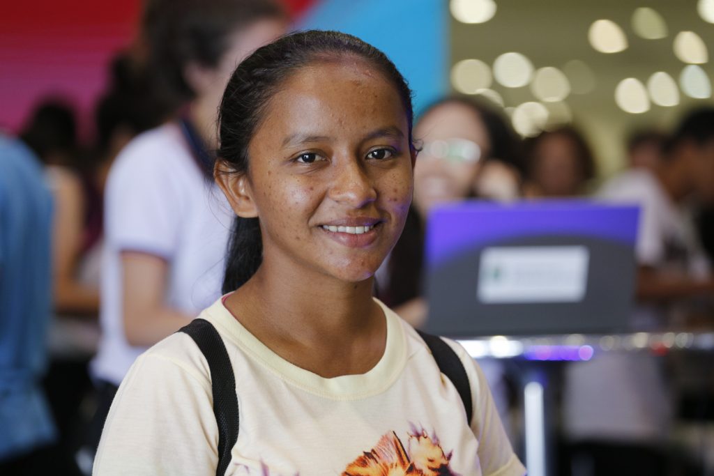 Elana Guimarães, 21 anos é ex-aluna da Escola Indígena Narcísio Ferreira Matos, em Caucaia, pertencente à etnia Tapeba. A jovem conta ter tido um caminho de superação pela educação. “Eu gosto de estudar, os nossos professores são muito atenciosos, e sempre nos incentivavam a não desistir. Isso foi muito importante para mim. No início, eu até cheguei a sair da escola, mas depois tive uma nova oportunidade, comecei novamente e consegui concluir. Estou muito feliz com esse prêmio, e minha família também”, destaca.