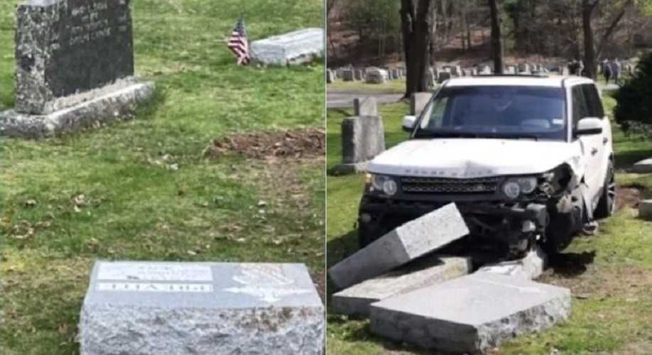 Uma motorista de 53 anos atropelou oito lápides em um cemitério de Melrose, no estado de Massachusetts (EUA), depois de ter confundido o acelerador do veículo com o freio.