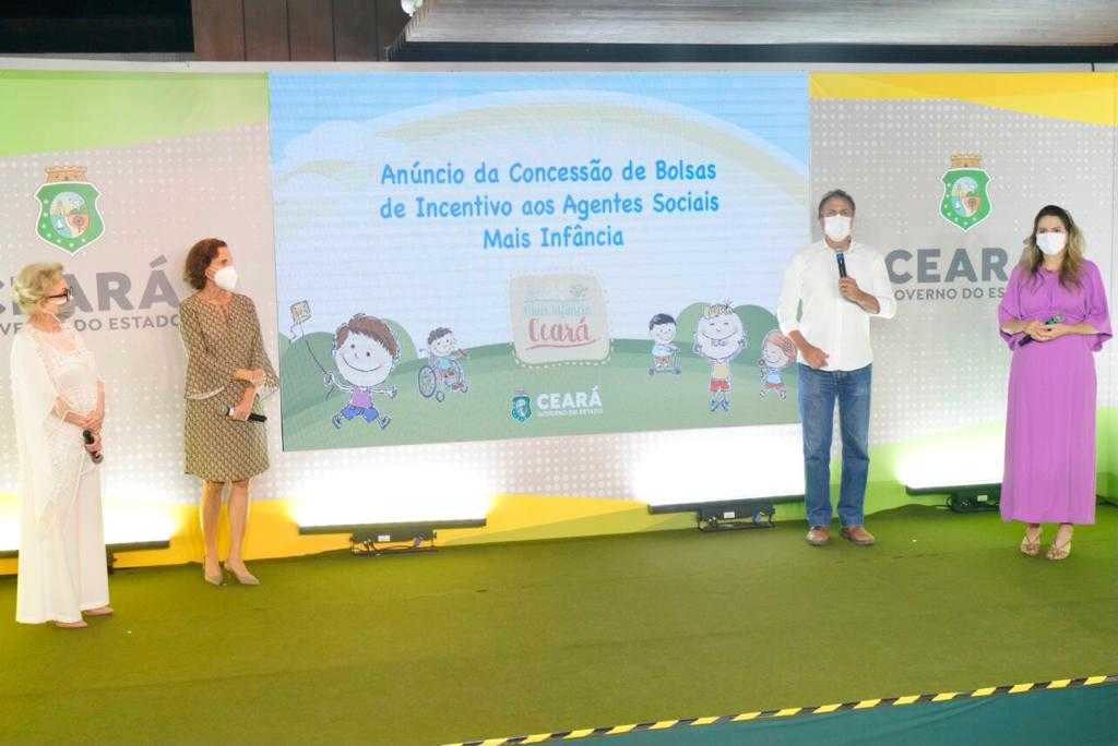 Através de uma transmissão online, o Governo do Ceará anunciou a concessão de Bolsas de Incentivo aos Agentes Sociais Mais Infância, presentes nos municípios do Estado. Foram selecionados 184 bolsistas para todos os municípios cearenses, com dois tipos de bolsas, uma no valor de R$ 1.800 para 30 horas semanais, e outra de R$ 1.200 para o cumprimento de 20 horas semanais. Camilo Santana, governador do Ceará, anunciou durante o evento que o investimento total deste programa é de R$ 3.326.400,00 em um ano. Ao seu lado estavam a vice-governadora do Estado, Izolda Cela, a primeira-dama do Ceará, Onélia Santana, e a titular da secretaria da Proteção Social, Justiça, Mulheres e Direitos Humanos (SPS), Socorro França.