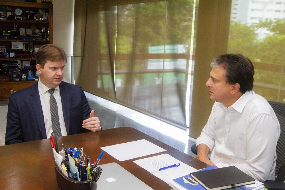 O governador Camilo Santana recebeu na manhã desta sexta-feira (15) o ministro do Desenvolvimento Regional, Gustavo Canuto. Em reunião no Palácio da Abolição o ministro anunciou que as águas do eixo Norte da transposição do Rio São Francisco começam a ser bombeadas para o Ceará em maio próximo. Canuto informou ter havido um problema estrutural em um trecho da obra, próximo ao reservatório de Negreiros, em Salgueiro, no sertão de Pernambuco.