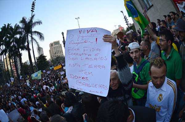 Os gastos elevados para a realização da Copa do Mundo de 2014 no Brasil são certamente uma das principais razões da revolta dos brasileiros expressa nas passeatas que ocupam as ruas das principais cidades e capitais do País. Nos protestos, fica claro o descontentamento com o volume e forma como são feitos os investimentos na Copa. Em São Paulo, manifestantes contra o aumento da passagem de ônibus têm circulado com cartazes com a frase “Fifa, paga minha tarifa” e entoado bordões como “Ei, Brasil vamos acordar: um professor vale mais do que o Neymar”.
