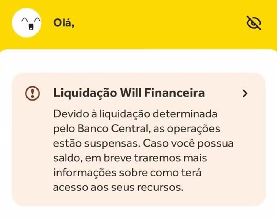 Aplicativo do Will Bank fica indisponível para operações após liquidação