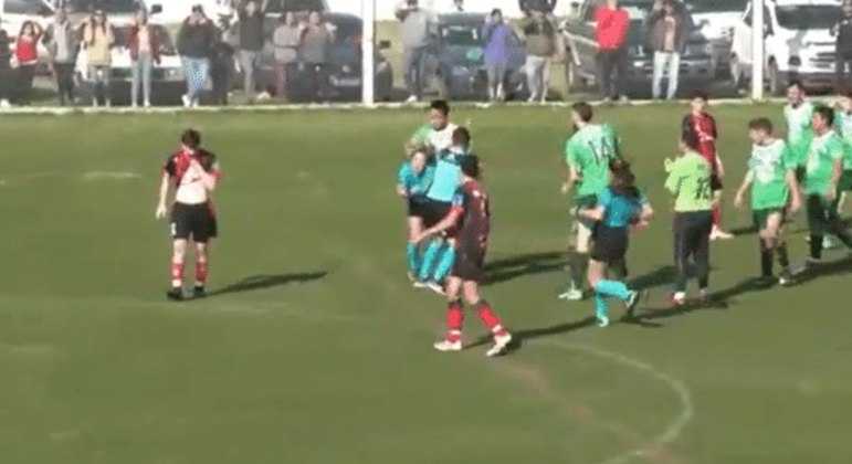 Uma cena de violência interrompeu e finalizou um jogo de futebol na Argentina na noite de domingo. A árbitra Dalma Magalí Cortadi foi agredida pelas costas durante o segundo tempo de Deportivo Independencia x Garmense, em jogo do campeonato regional, na cidade de González Chaves, na província de Buenos Aires.