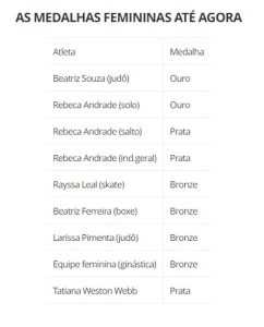 O melhor desempenho das mulheres brasileiras em Olimpíadas havia sido em Tóquio, há três anos, com três medalhas. Nesta edição, faltando ainda sete dias para o encerramento, as brasileiras já somam nove medalhas, além de terem integrado a equipe mista de judô, composta por três atletas de cada sexo.