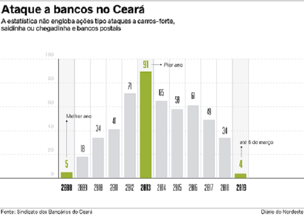 Para reverter este quadro desfavorável, o Sindicato dos Bancários do Ceará “fez vários encaminhamentos para solucionar a questão, como diversas audiências, sobretudo com a direção do Banco do Brasil, que é o banco mais atingido pelos ataques”. Por sua vez, o banco garantiu que trabalha para recompor as estruturas danificadas durante esses ataques com a maior brevidade possível. “Esses ataques têm levado a contingenciamentos, suspensão temporária ou mesmo definitiva do atendimento em alguns municípios do País”, destacou a assessoria do Banco.