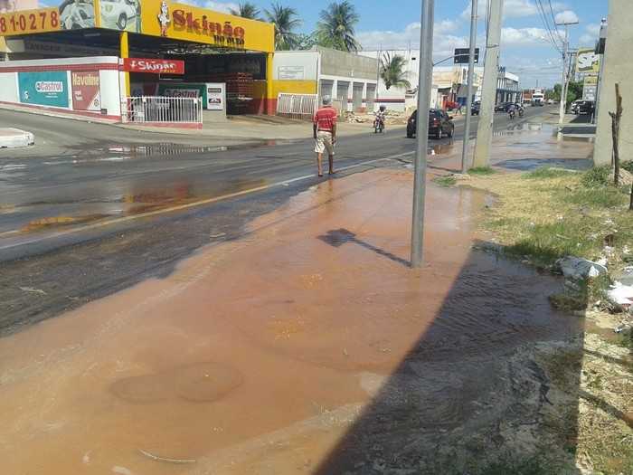 Foto: Fagner Leandro[/caption]No Começo da tarde desta quinta-feira (12), um cano de abastecimento de água do SAAE quebrou nas proximidades do Cruzamento da Rua do Cruzeiro com Avenida Dário Rabelo.
