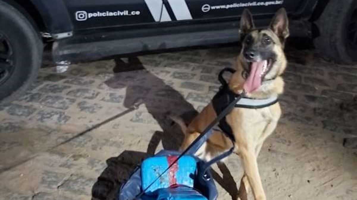 Cão farejador auxilia Polícia Civil a localizar tabletes de crack em bagagem de passageira no Crato