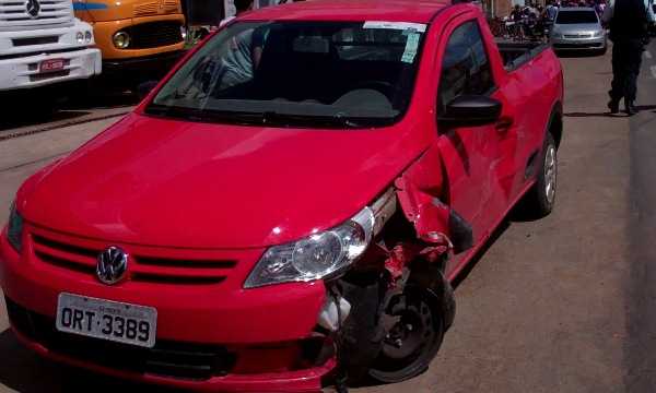 A motocicleta de placa OIE – 7414, inscrição de Iguatu, que vinha sendo guiada por uma pessoa de nome Charles conforme informações de populares, o mesmo avançou a preferencial e o veículo Saveiro de cor vermelha e placas ORT – 3384, guiado por Francisco Cândido de Oliveira colidiu na lateral da moto. Momento do acidente (Foto: Cavalcante Neto)