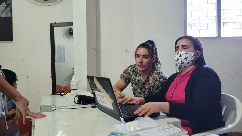 Com o auxílio de um notebook e fones de ouvido, Alanna executou as atividades como segunda mesária. A função era identificar, na lista digital disponível no equipamento, a pessoa que chegava para votar e, após identificá-la, ela ditava o número do título de eleitor para o presidente da seção e sua sequência no caderno de votação, para que o outro mesário localizasse o eleitor no caderno físico.