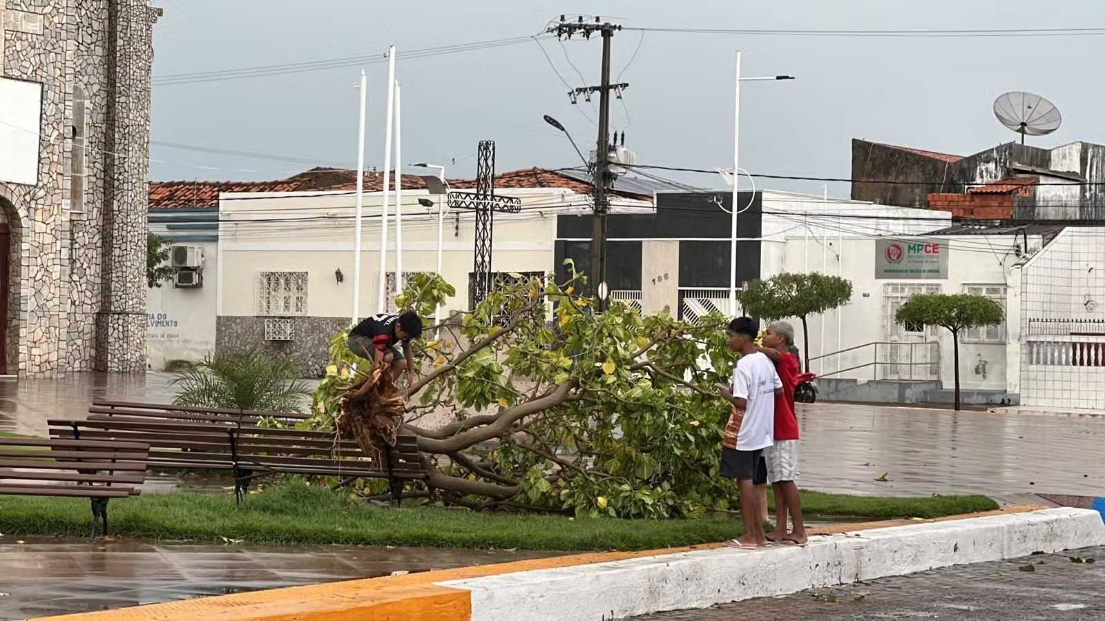 Na terça-feira (26), o município de Coreaú, localizado no interior do Ceará, foi atingido por uma chuva intensa. Durante a precipitação, que ocorreu na tarde de segunda-feira, os moradores registraram a ocorrência de granizo. A chuva resultou em danos a residências, ao teto de uma escola, derrubou árvores e até a antena de uma estação de rádio local.