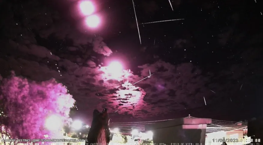 Durante o período compreendido entre as 18h30 de sábado (10) e 6h30 de domingo (11), cinco câmeras de uma estação de monitoramento em Monte Castelo, cidade localizada no norte de Santa Catarina, capturaram mais de 200 registros de uma chuva de meteoros.