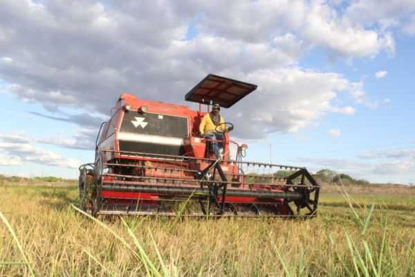 Começou a colheita de arroz irrigado nas várzeas do Açude Orós, no município de Iguatu, na região Centro-Sul do Ceará. Três máquinas fazem o trabalho em uma área estimada de 300 hectares.