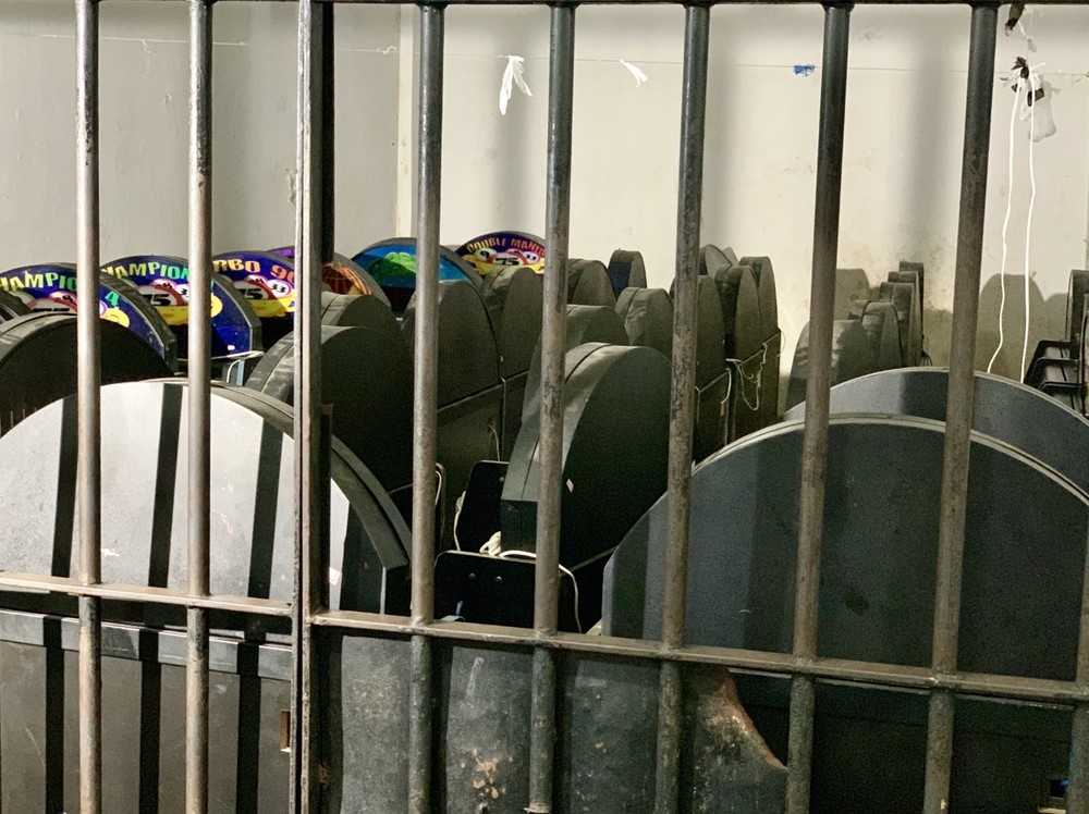 Mais de 60 máquinas caça-níqueis apreendidas pela Polícia Civil do Ceará em operações de combate aos jogos de azar estão à espera de autorização da Justiça para destruição. Somente no 34º Distrito Policial, no Bairro Centro, em Fortaleza, 41 máquinas estão “guardadas” no xadrez. A medida, tomada pelo delegado Fernando Cavalcante, seria para evitar eventuais retiradas de peças, além de não ocupar outros espaços em comum dentro da unidade.