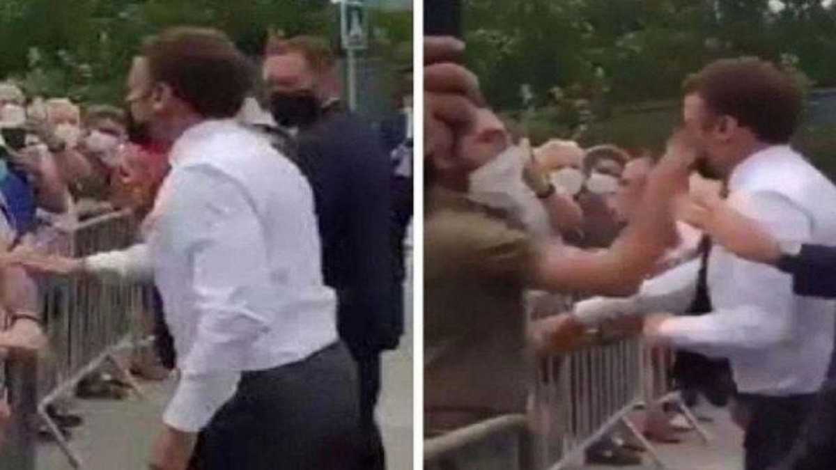 O presidente francês, Emmanuel Macron, foi agredido com um tapa no rosto durante viagem oficial ao sul da França nesta 3ª feira (8.jun). A agressão aconteceu no momento em que Macron se aproximou de uma cerca para cumprimentar alguns apoiadores. Duas pessoas foram detidas.