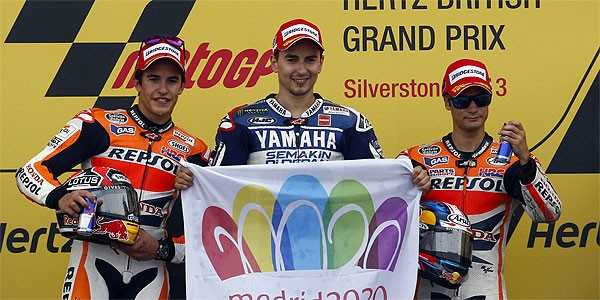 O também espanhol Dani Pedrosa, que perdeu algumas posições na largada, mas depois se recuperou, terminou a etapa da Grã-Bretanha na terceira colocação. O italiano Valentino Rossi, da Yamaha, ultrapassou o espanhol Álvaro Bautista na última volta para garantir o quarto lugar.