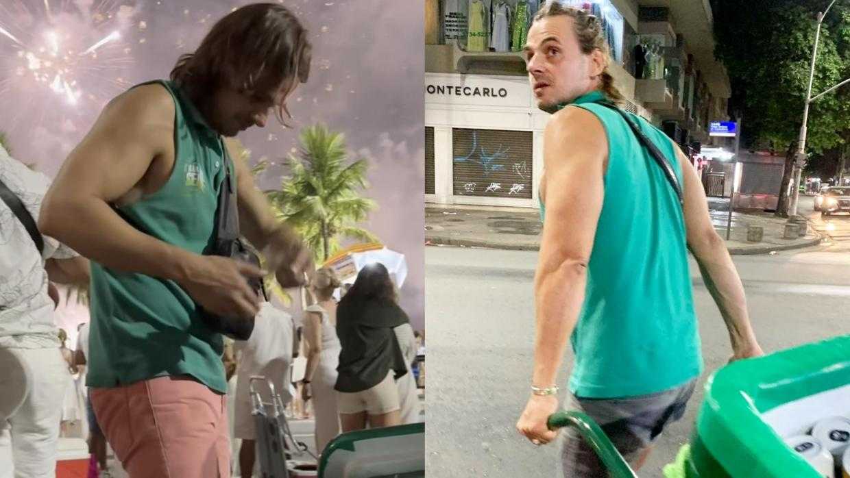 No Instagram, ele chegou a publicar fotos em trabalho na Praia de Copacabana durante o réveillon. O empreendimento do ator, puxado em um carrinho com três grandes caixas de isopor, é chamado de “Ilha da sede”.