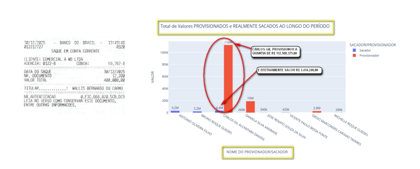 Ainda conforme os autos, Antônio Oliveira Filho teria realizado saques superiores a R$ 3,2 milhões em dinheiro vivo, sempre a pedido do empresário investigado.