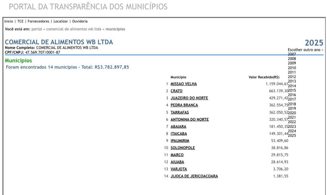 A empresa mantém contratos com diversos municípios do Ceará, inclusive com a Prefeitura de Iguatu. Conforme registros oficiais do Município, apenas em 2025, a DLA recebeu R$ 4.901.641,79 em pagamentos provenientes da administração municipal, referentes ao fornecimento de gêneros alimentícios destinados à rede municipal de ensino.