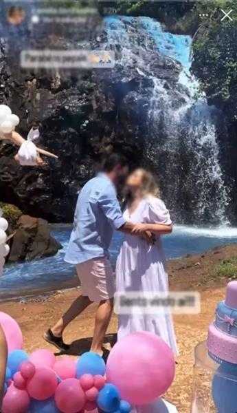 O evento foi realizado no domingo (25). Imagens publicadas por pessoas que participaram da festa – apagadas posteriormente, após repercussão negativa – mostram o momento em que a água da cachoeira fica azul para anunciar a chegada de um menino. Eles também usam fumaça colorida e soltam confetes.