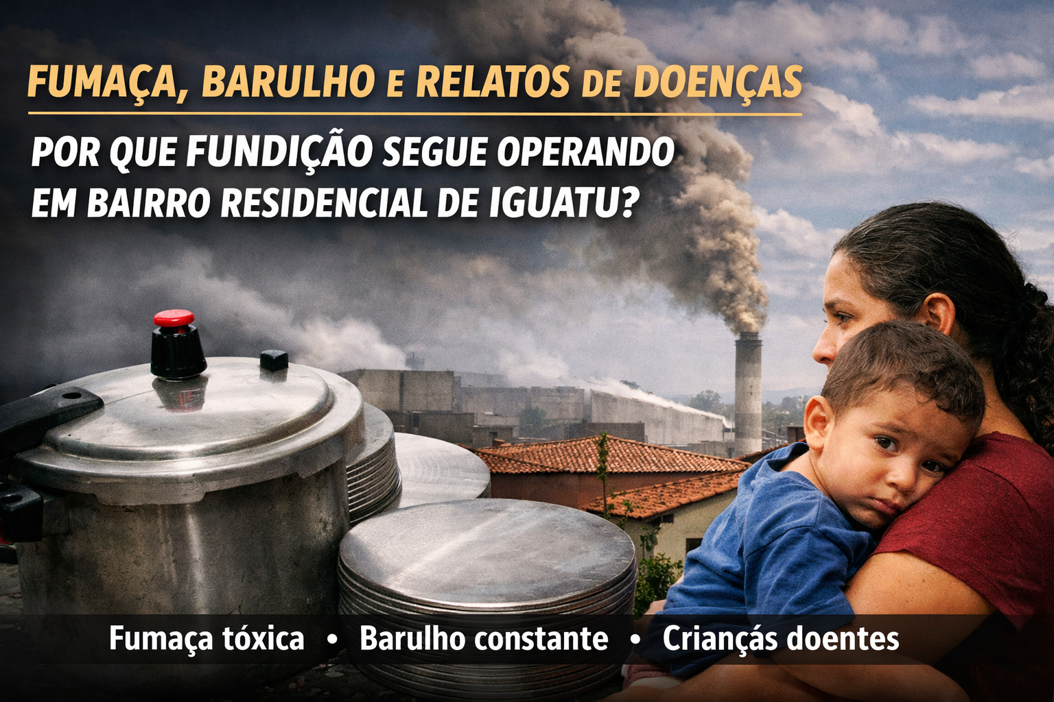 Iguatu, Ceará – 05/02/2026 – Moradores do bairro Esplendor, em Iguatu, afirmam conviver há anos com problemas de saúde, ruído intenso e emissão de fumaça provenientes de uma fundição de alumínio instalada nas proximidades da área residencial.