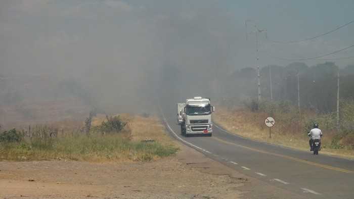 Fumaça preta de incêndio em lixão cobre CE-282 e preocupa motoristas