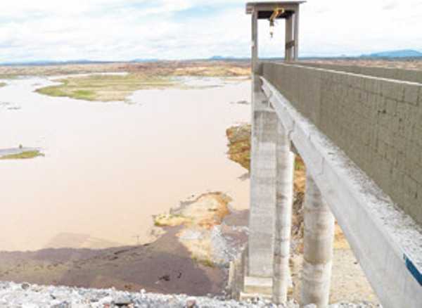 O Açude Figueiredo, localizado entre Iracema e Alto Santo, e que levou anos para sua construção em vista de disputas judiciais, finalmente recebe água pela primeira vez após sua inauguração. Ele foi construído pelo DnocsFOTO: JANUÁRIO LIMA
