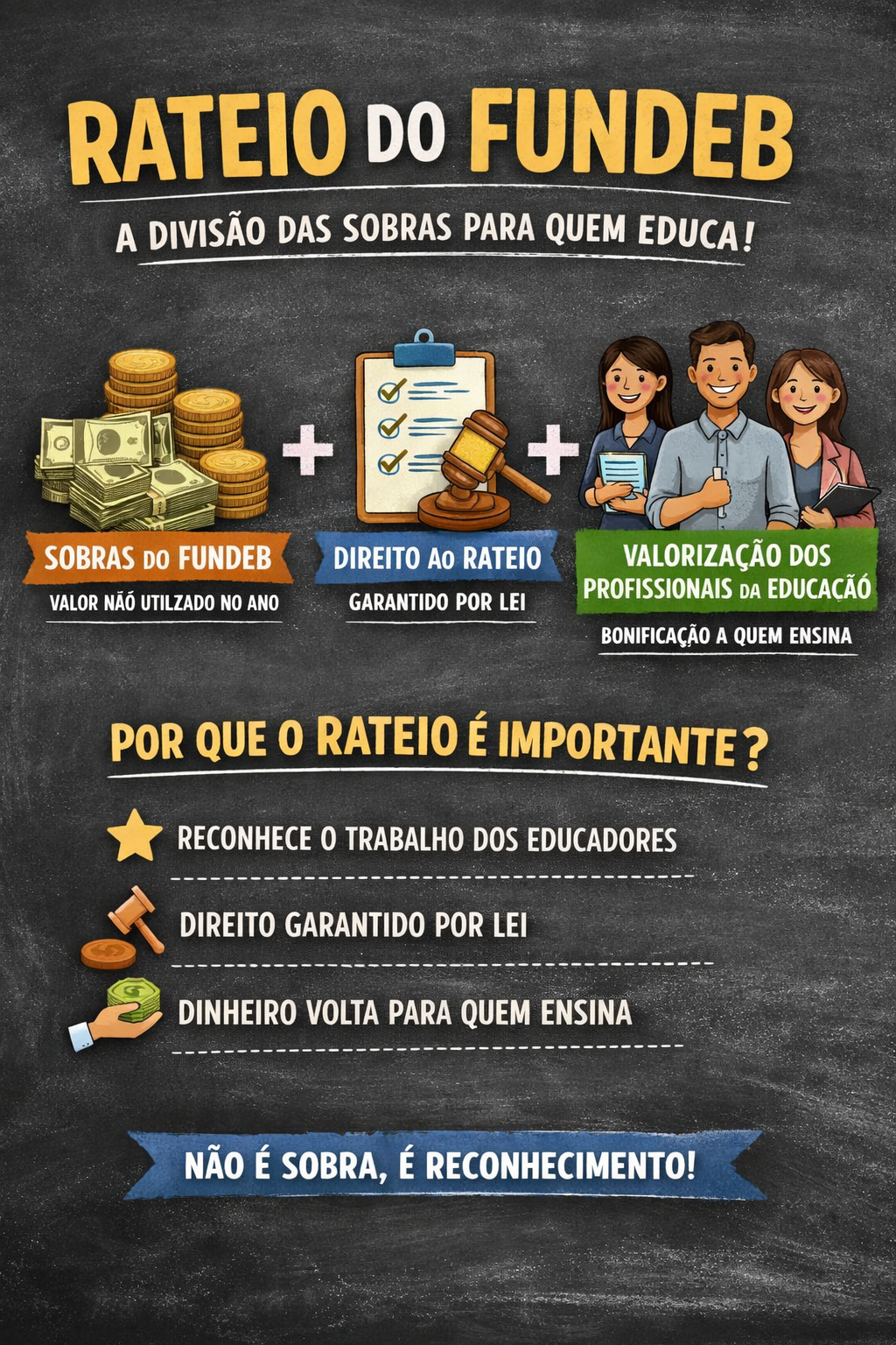 Especialistas e parlamentares, no entanto, alertam que não existe lei federal que obrigue ou autorize a utilização da parcela mínima dos 70% do FUNDEB em obras ou reformas em detrimento do rateio com os profissionais da educação. Ao contrário, a legislação vigente ratifica o direito ao rateio como instrumento de valorização da categoria, especialmente quando o percentual mínimo não é atingido ao longo do exercício.