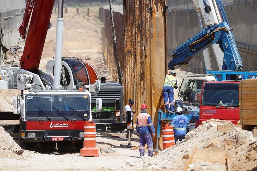Há canteiros de obras também para a construção da Linha Leste do Metrô de Fortaleza. No Centro, que será o ponto de partida da nova linha, os serviços se dividem em várias frentes, com as escavações da estação Chico da Silva e a conclusão da montagem e teste das tuneladoras, que são as máquinas que escavarão os túneis, e da fábrica de anéis de concreto.