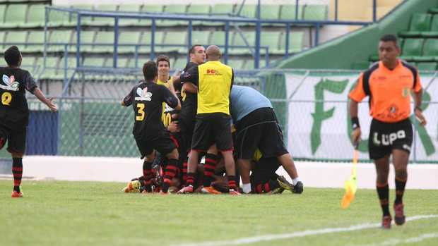 Jogadores do Guarani de Juazeiro comemoram gol que deu a vitória sobre o rival, Icasa (Foto: Normando Sóracles/Agência Miséria de Comunicação)