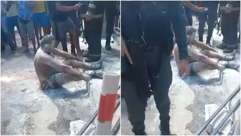 Pessoas que estavam próximas usaram água, cimento e areia para tentar apagar as chamas no corpo do suspeito.