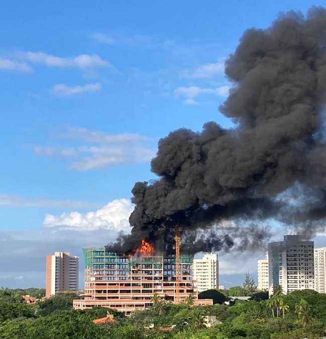 Maternidade em construção pega fogo no bairro Luciano Cavalcante, em Fortaleza