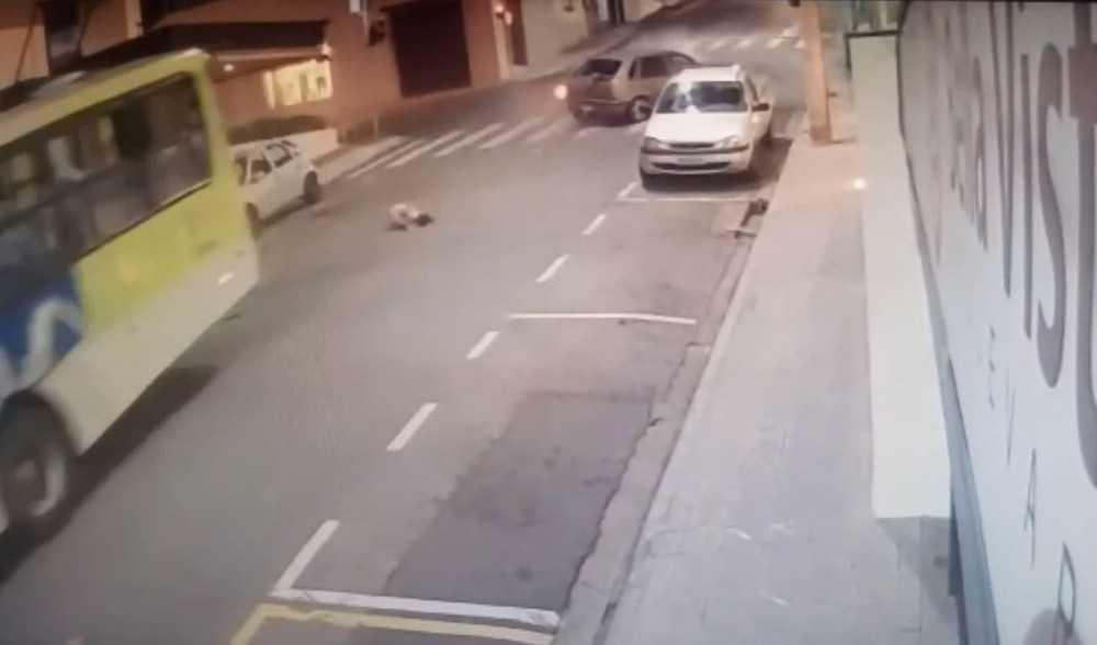 No momento do impacto, a criança foi arremessada e, por pouco, não foi atingida pelo ônibus. Na sequência, o menino saiu correndo e foi ao encontro de uma mulher, que o pegou no colo.