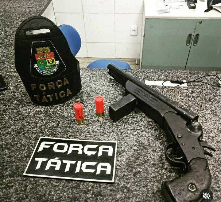 Uma espingarda calibre 12, cano duplo, cortada e duas munições de igual calibre foi apreendida em Iguatu por volta das 22h de terça-feira, 13.