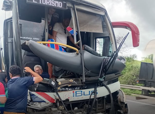 Um ônibus que transportava torcedores do Fortaleza se envolveu em um acidente nesta sexta-feira (28) em uma rodovia estadual da Bahia. O veículo bateu na traseira de uma carreta na BA-324, enquanto a torcida retornava de Bragança Paulista (SP), após o jogo contra o RB Bragantino. Segundo os organizadores, não houve vítimas graves e todos passam bem.