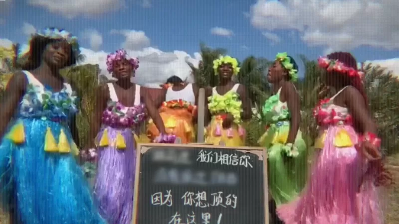 Este formato da gravação se tornou popular nos últimos anos na China: vídeos de felicitações personalizados, nos quais pessoas de algum lugar da África, muitas delas negras e menores de idade, enviam saudações em um idioma que elas mesmas muitas vezes não entendem.