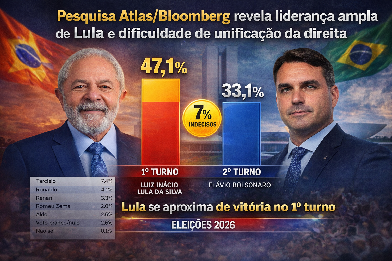 A pesquisa Atlas/Bloomberg indica, portanto, um cenário dual: ao mesmo tempo em que confirma polarização e possibilidade real de disputa acirrada em eventual segundo turno, também sugere que a eleição de 2026 pode começar com vantagem estrutural relevante para o atual presidente.
