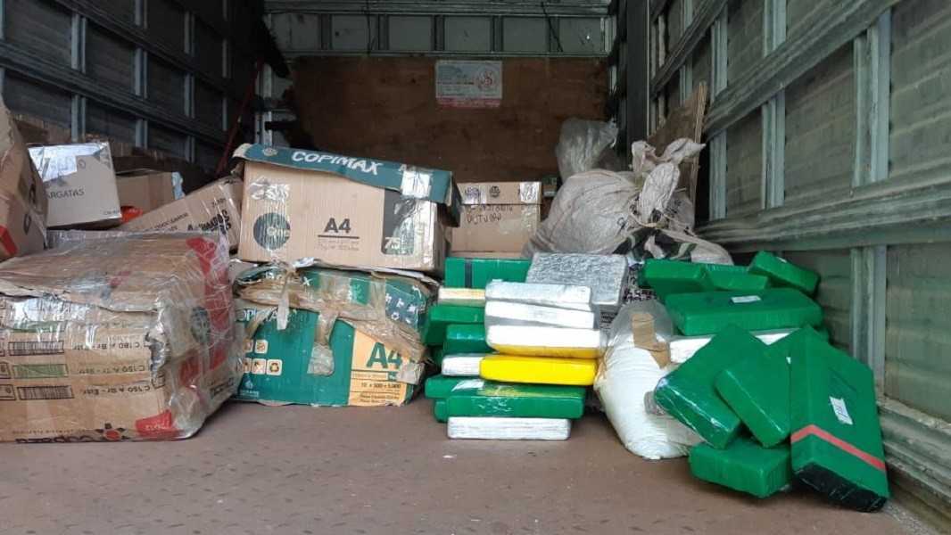 O carregamento contém 758,3 kg de maconha; 16,3 kg de craque; 126,5 kg de cocaína e 28 kg de pó branco; 838 comprimidos de ecstasy, 3.274 selos de dietilamida do ácido lisérgico (LSD), 147 comprimidos psicotrópicos, além de diversos esteroides anabolizantes, oito mudas de maconha, 90 gramas de metilenodioximetanfetamina (MDMA) e 41 frascos de lança-perfume.