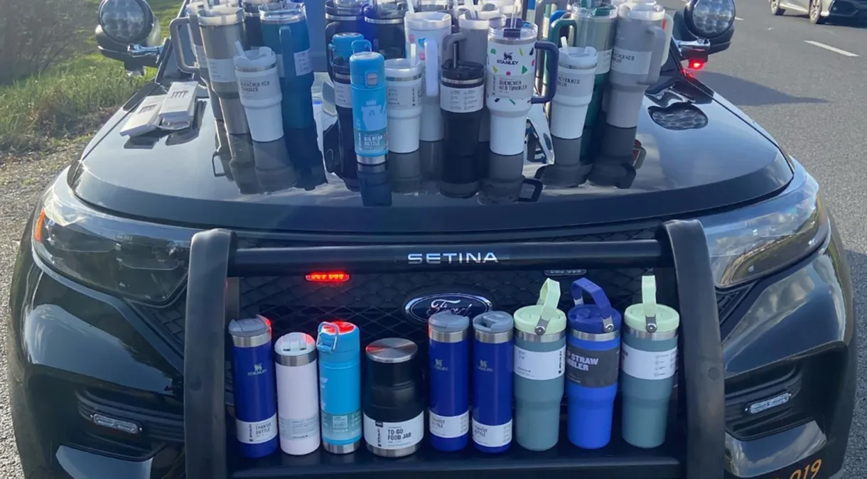Posteriormente, um policial avistou o veículo da mulher em uma rodovia próxima, resultando na prisão da jovem de 23 anos, cuja identidade não foi revelada. A polícia conseguiu recuperar 65 copos da marca Stanley.