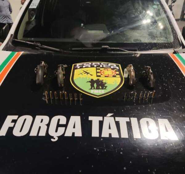 Com a abordagem, a composição identificou o passageiro da moto como Clailson Silva de Oliveira (18). O homem estava com uma sacola onde foram encontrados dois revólveres calibre 38, um revólver calibre 32 e um revólver calibre 22, além de 16 munições, um aparelho celular e uma quantia em dinheiro. Os militares identificaram que a condutora da motocicleta já tem passagens na polícia por crime ambiental e tráfico ilícito de drogas.