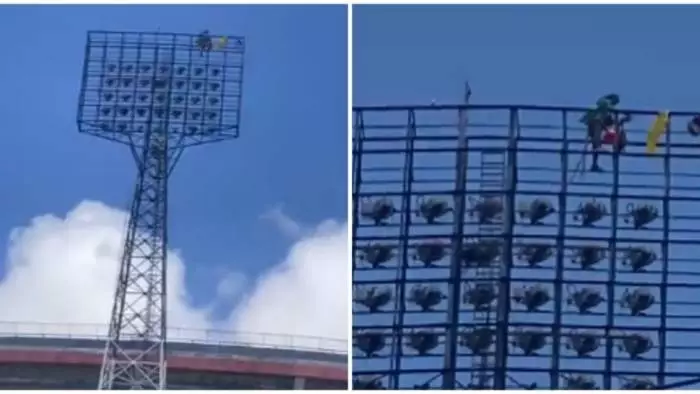 RECIFE: Homem escala torre do estádio do Arruda e ameaçou só descer quando Bolsonaro voltasse
