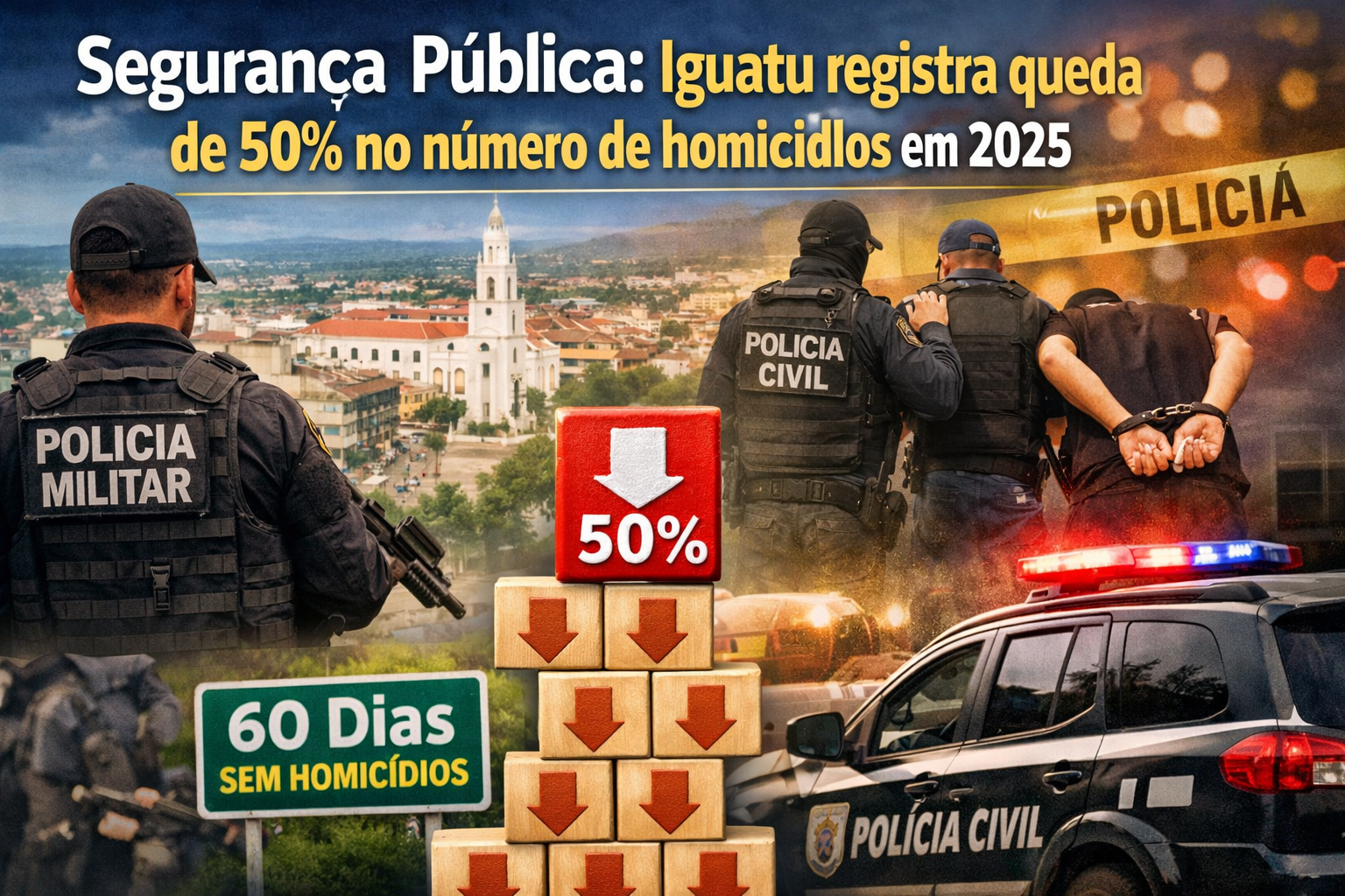 Iguatu encerrou o ano de 2025 com um dos melhores resultados de sua história recente na área da segurança pública. Dados consolidados apontam uma redução de 50% no número de homicídios em relação ao ano anterior, com o registro de 14 ocorrências ao longo de todo o ano — a melhor marca dos últimos 15 anos no município.