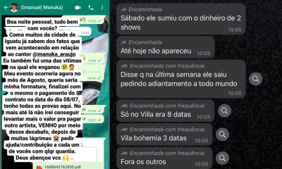 Em Iguatu, o cantor local “Manuka Araújo” tem sido alvo de denúncias nas redes sociais por parte de contratantes que se consideram lesados pelo artista. Segundo...