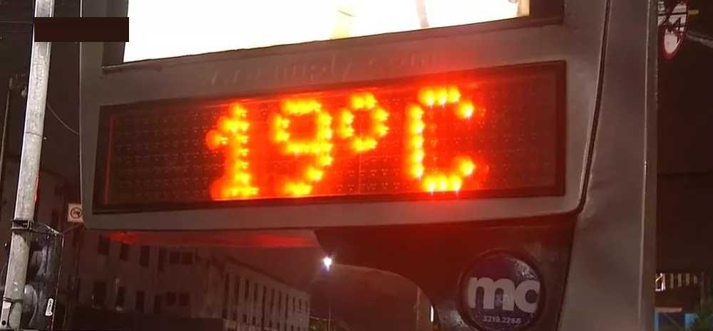 Os termômetros de rua registraram 19ºC em Fortaleza na madrugada desta quinta-feira (7), conforme marcado às 4h11 no equipamento da esquina da Avenida Desembargador Moreira com a Avenida Antônio Sales, no Bairro Dionísio Torres.