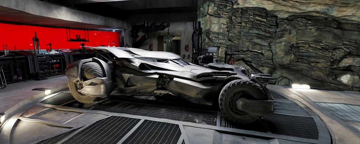 Depois de uma transição rápida, você é transportado para um caminho pouco iluminado que leva até um salão bem maior e familiar para quem já conferiu o longa-metragem na telona. O primeiro objeto de destaque a ser visto é simplesmente o Batmóvel, que é simplesmente uma das máquinas mais imponentes do cinema e que, cara a cara, ganha ainda mais respeito. Graças aos recursos do site de mapas da Google, é possível rodear o carro, aproximar a visão e até conferir detalhes que não se percebe tão facilmente quando o veículo está sendo usado para atropelar o Superman.