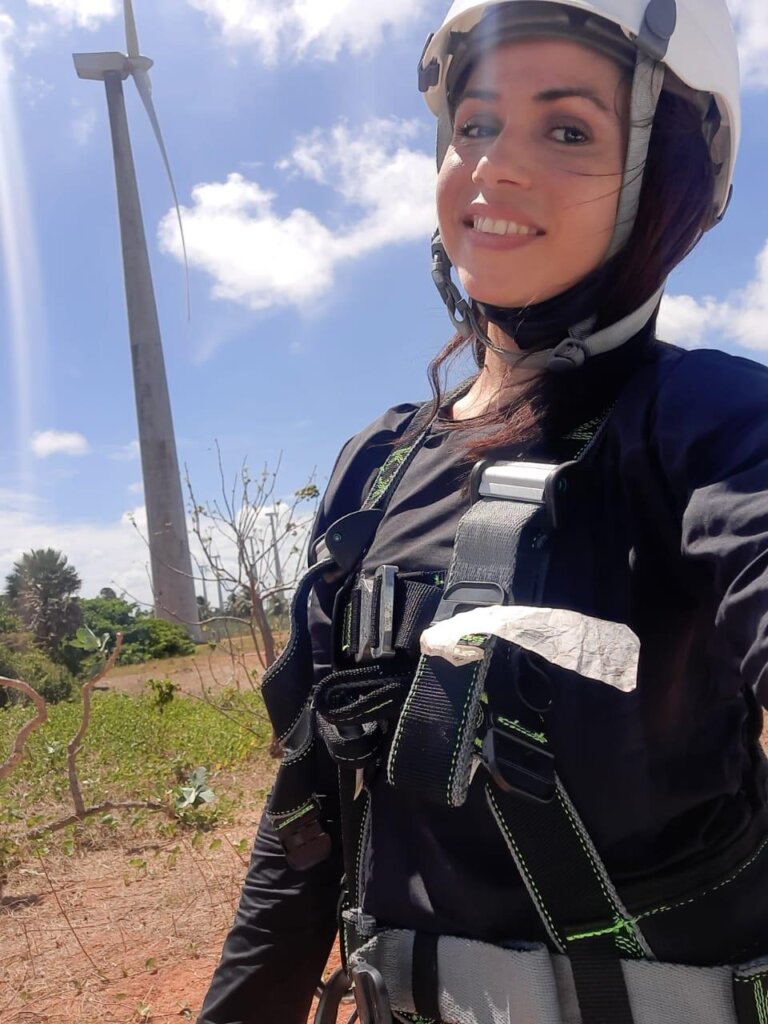 Única mulher no cargo, cearense alpinista industrial de pás eólicas fiscaliza 24 equipes no País