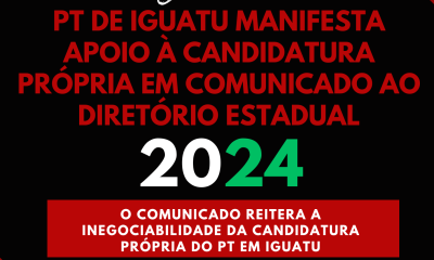 Iguatu, Ceará – 05 de Março de 2024 Os membros do Partido dos Trabalhadores (PT) em Iguatu divulgaram um comunicado ao Diretório Estadual expressando apoio à...