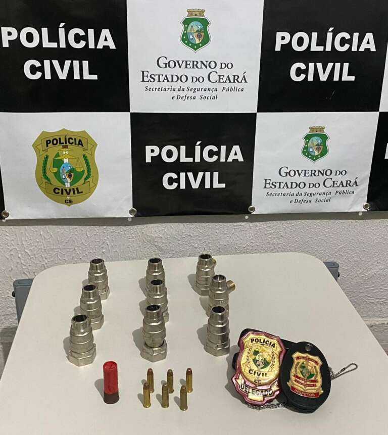 No momento da captura, o indivíduo estava com uma pequena quantidade de maconha. Com ele foram apreendidas nove chaves gerais de hidrômetro de uso exclusivo da Companhia de Água e Esgoto do Ceará (Cagece). Além desse material, seis munições calibre 38 e uma de calibre 12 também foram apreendidas.