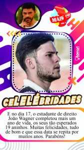 NOTA 03 – E no dia 17, o estudante de direito João Wagner completou mais um ano de vida, os seus tão esperados 19 aninhos. Muitas felicidades, tudo de bom e que essa data se repita por muitos anos. Parabéns!