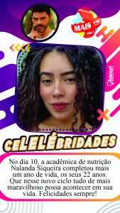 NOTA 04 – No dia 10, a acadêmica de nutrição Nalanda Siqueira completou mais um ano de vida, os seus 22 anos. Que nesse novo ciclo tudo de mais maravilhoso possa acontecer em sua vida. Felicidades sempre!